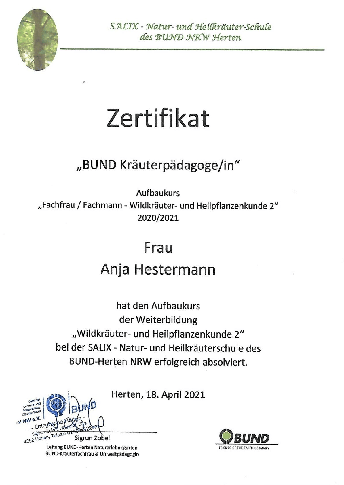 ich bin Anja Hestermann - zertifizierte Kräuter- und Umweltpädagogin, Naturführerin und Gründerin von Sinfonie der Kräuter.